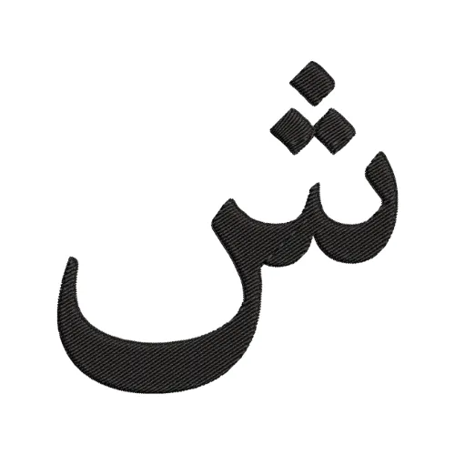 The Sheen embroidery design (ش) highlights the sophisticated elegance of Arabic calligraphy. Digitized for precise stitching, this design is perfect for garments, home décor, and creative gifts. Optimized for a 100×100 mm hoop, it ensures smooth embroidery and professional results.
